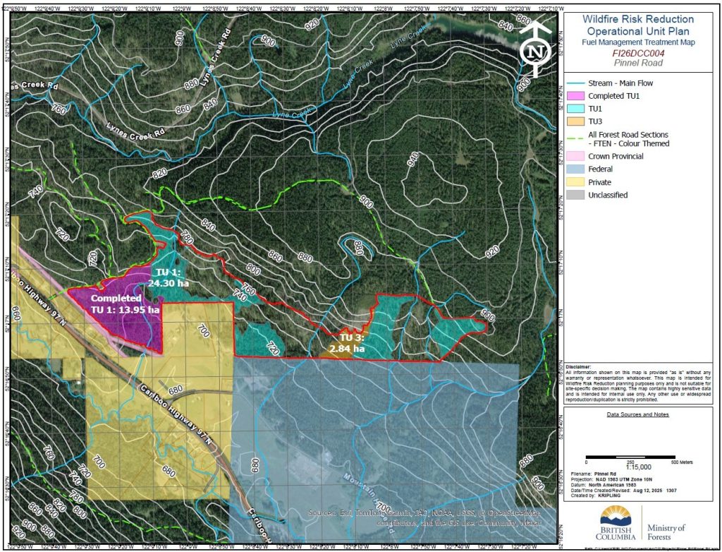 WILLIAMS LAKE – Cariboo Chilcotin Forest District will be working in partnership with Xat’sull Development Corporation to perform a wildfire risk reduction project along Pinnel Road.